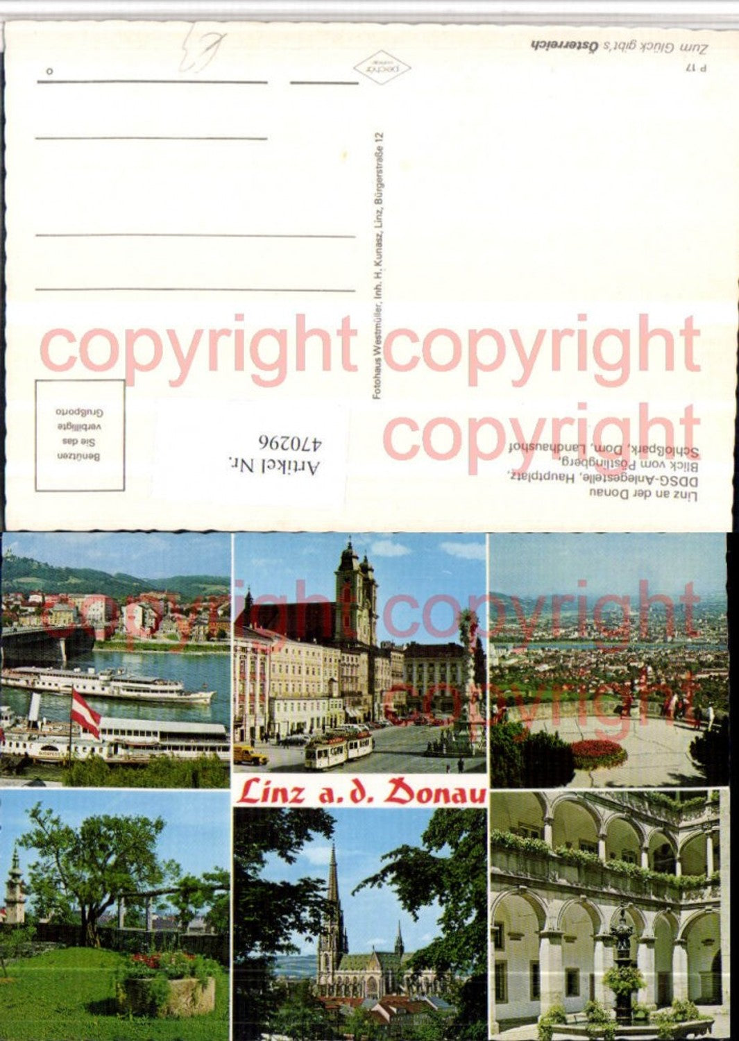 470296,Linz an d. Donau Totale Dampfer Hauptplatz Arkaden Dom Mehrbildkarte