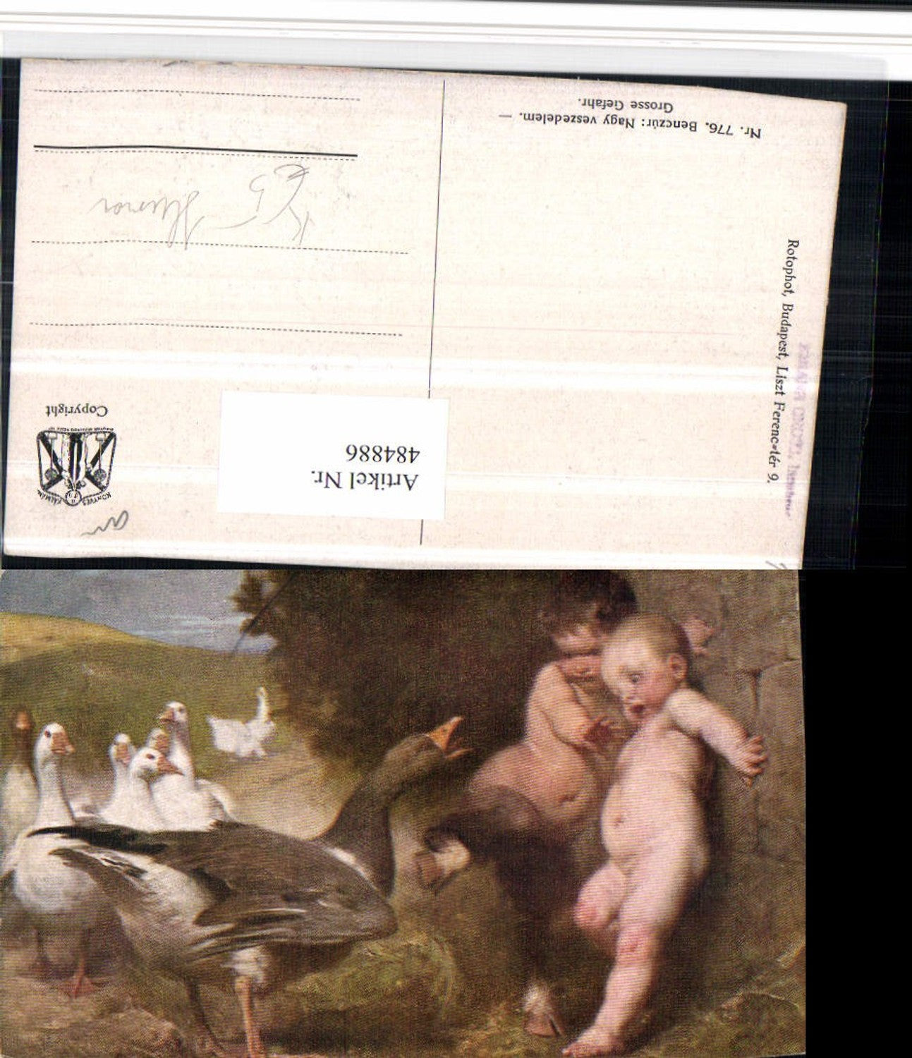 484886,Künstler AK Benczur Große Gefahr Scherz Humor Kinder Gänse
