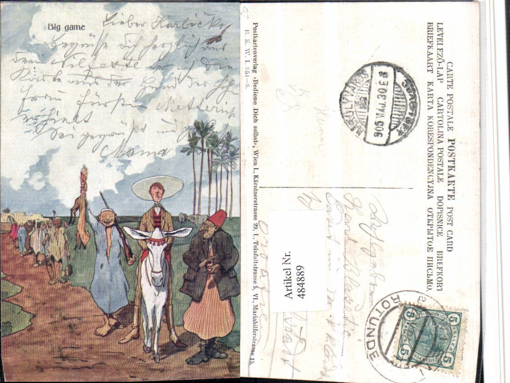 484889,Künstler AK Big game Scherz Humor Jagd pub B.K.W.I. 951/8