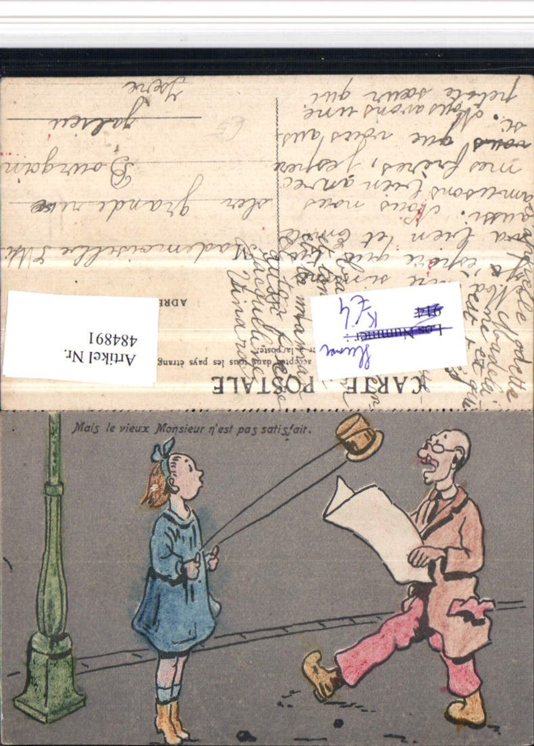 484891,Künstler AK Scherz Humor Mann Hut Mädchen Seil