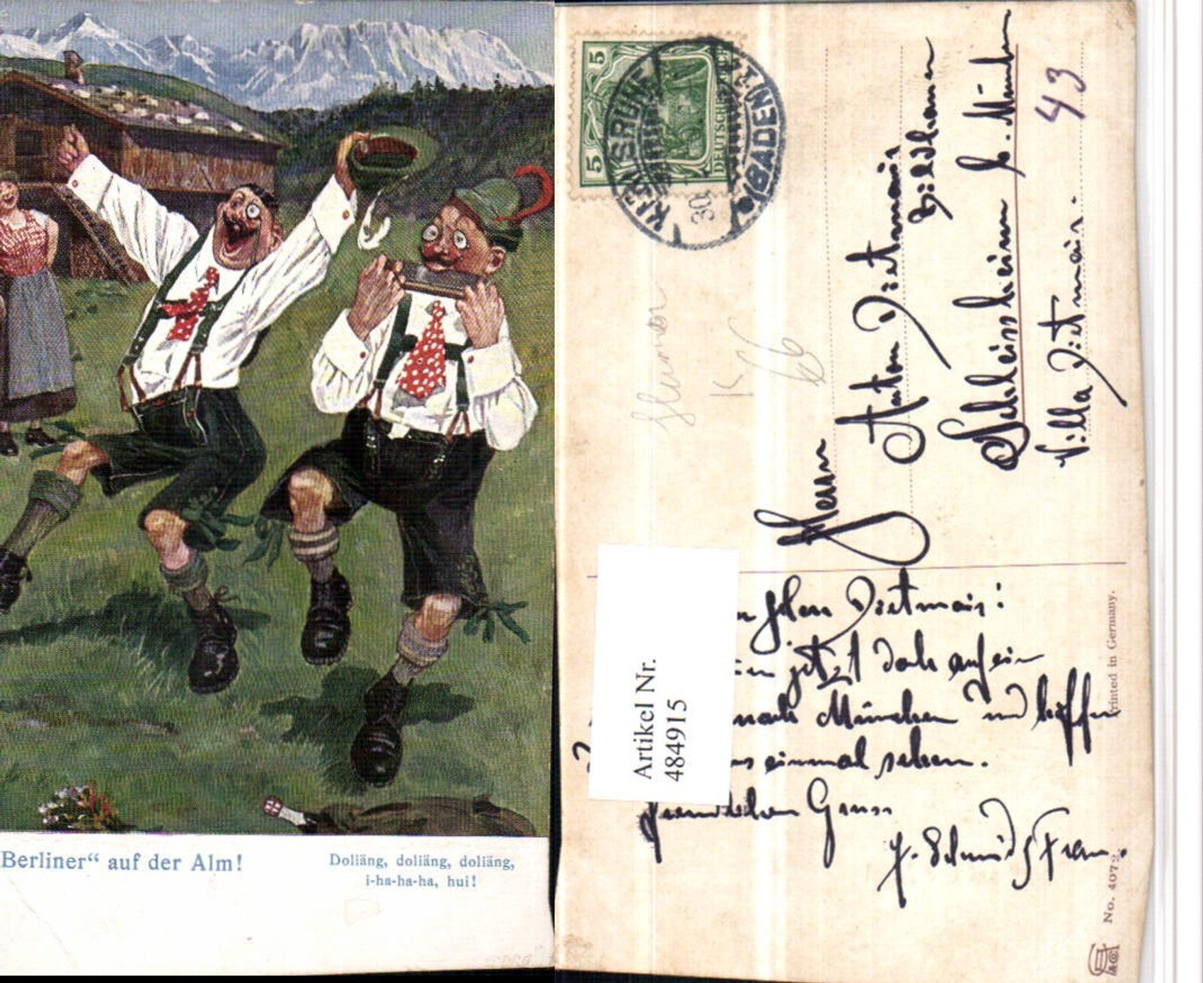 484915,Künstler AK Scherz Humor Berliner auf der Alm Tracht Tanz