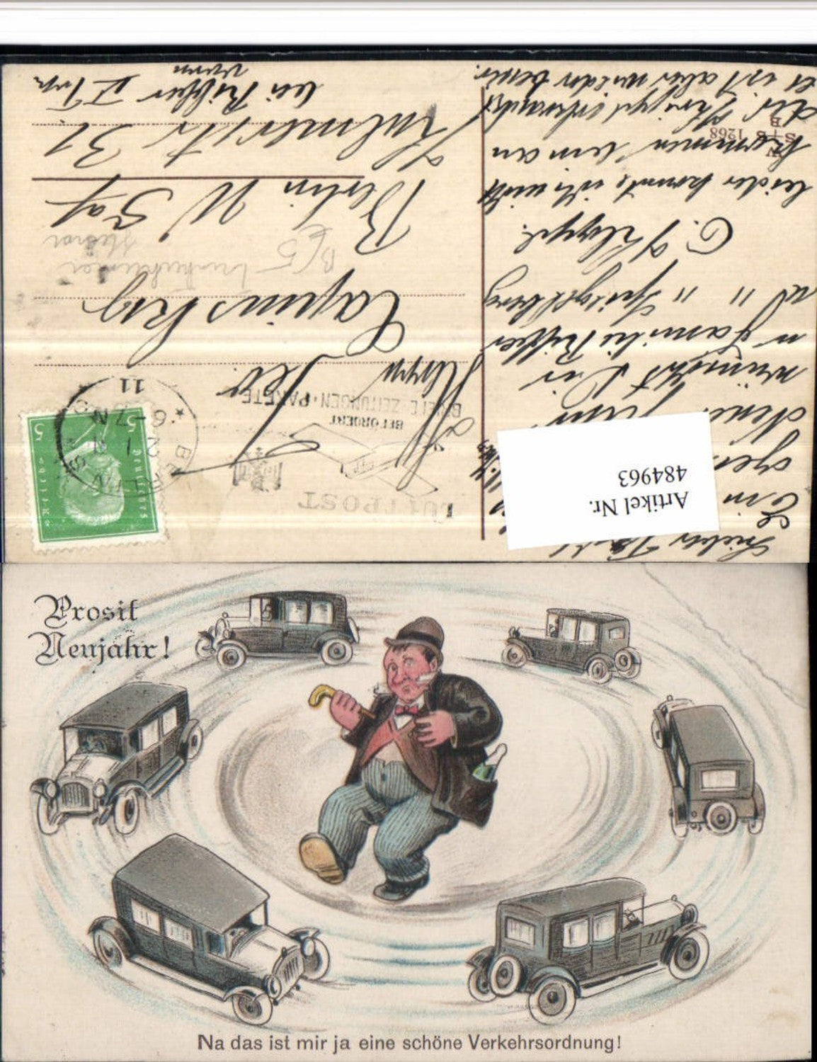 484963,Künstler AK Neujahr Trinkerhumor Betrunkener Autos Kreis