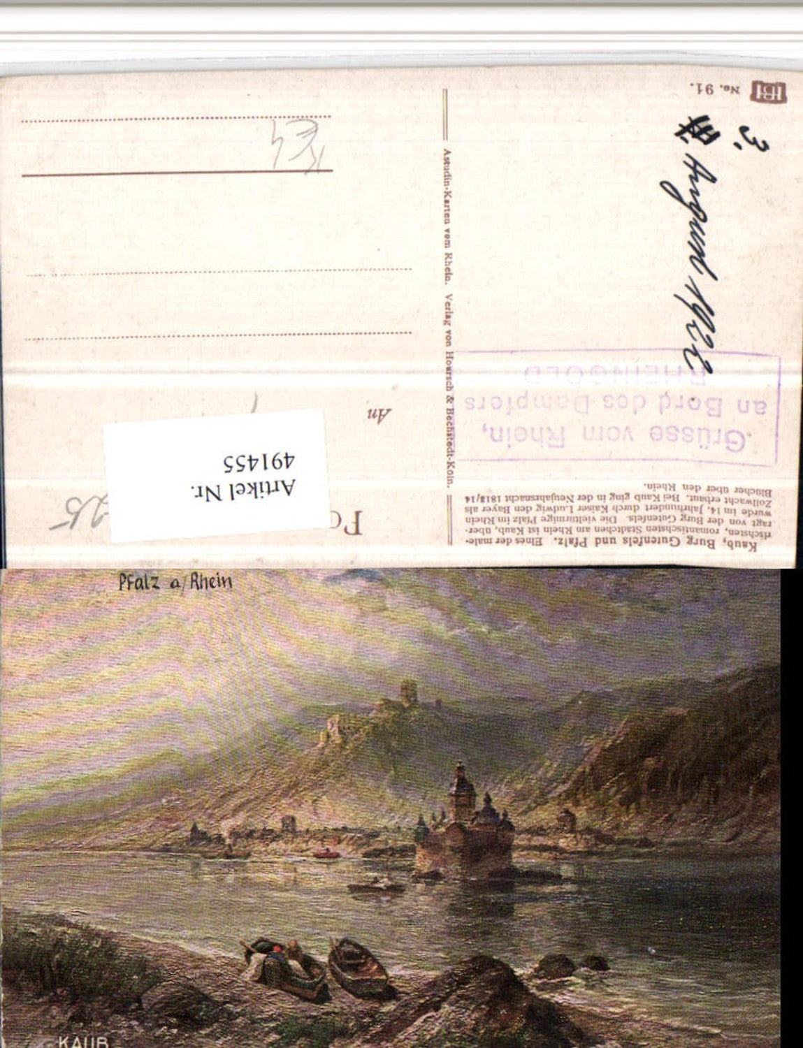 491455,Künstler AK N. Astudin Pfalz am Rhein Burg b. Kaub