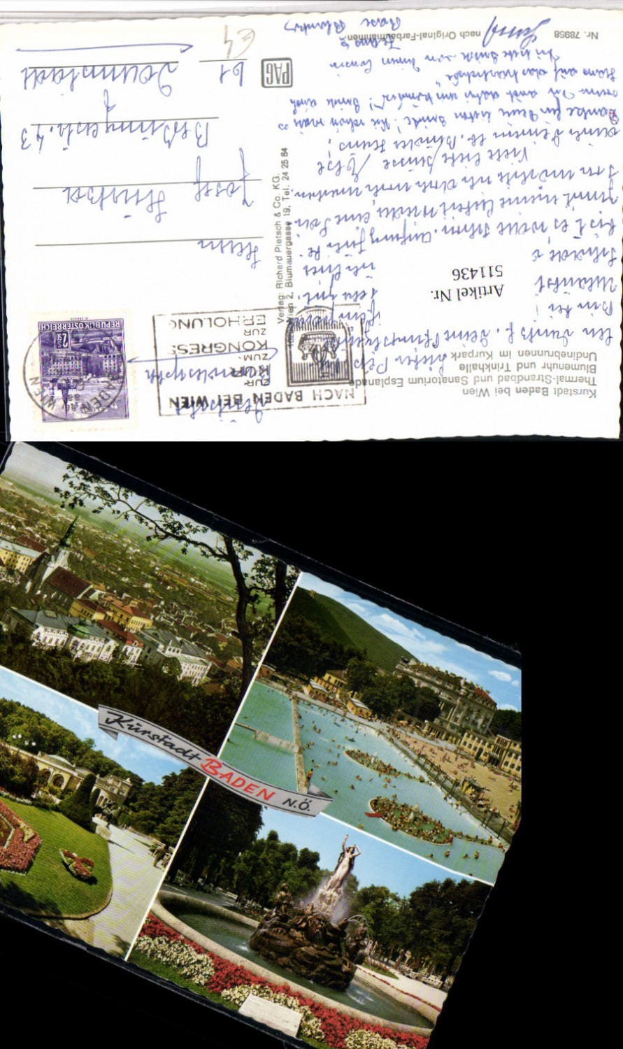 511436,Baden b. Wien Thermalbad Sanatorium Blumenuhr Brunnen Mehrbildkarte