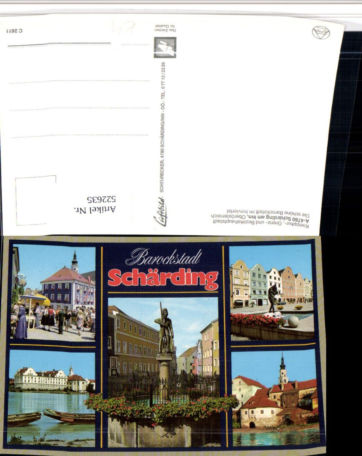 522635,Schärding am Inn Stadtplatz Rathaus Brunnen Mehrbildkarte