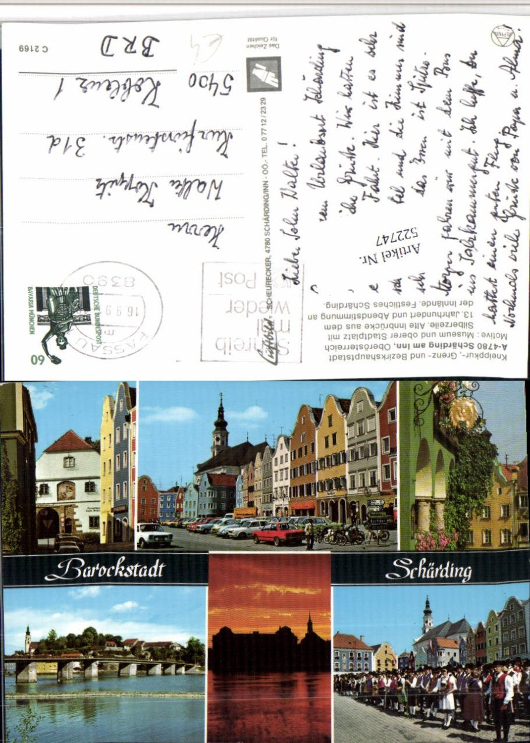 522747,Schärding am Inn Teilansicht Brücke Tracht Mehrbildkarte