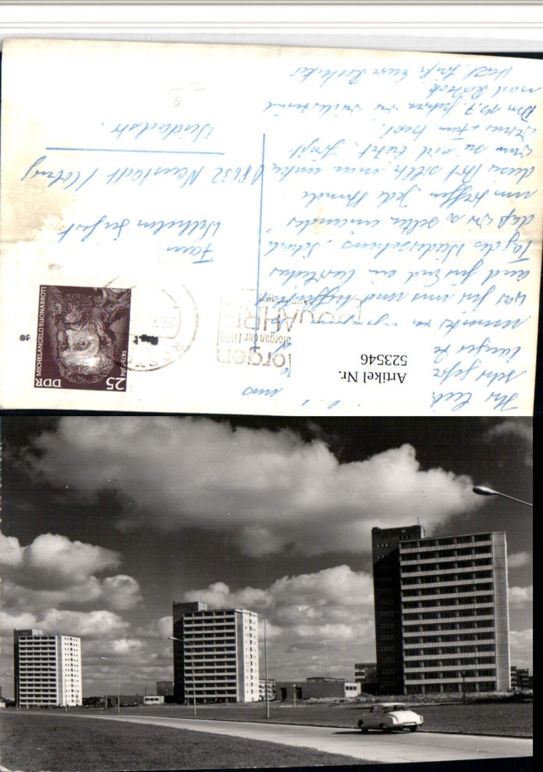 523546,Foto-AK Rostock Wohnhäuser Straßenpartie Oldtimer Auto