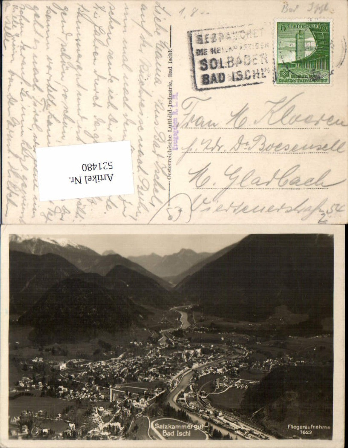 531480,seltene Fliegeraufnahme Bad Ischl Salzkammergut Nr. 1623 Luftbild