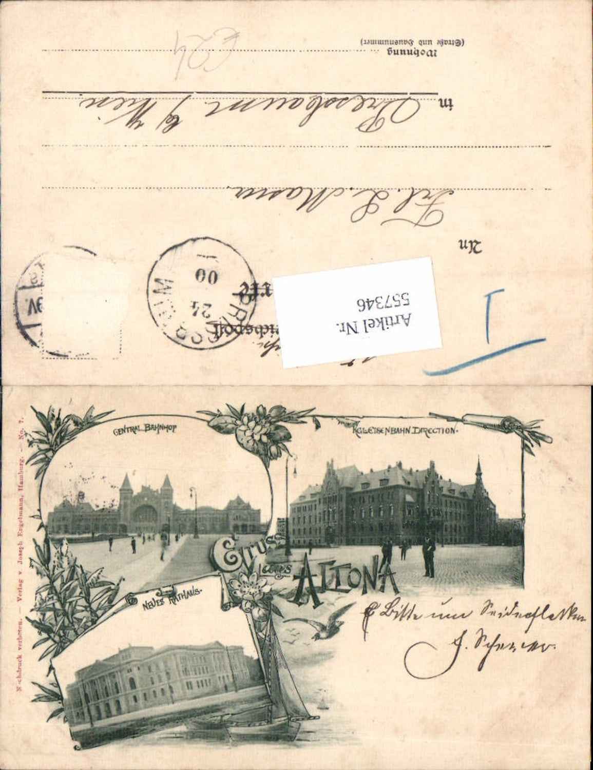 557346,tolle AK Gruß aus Altona bei Hamburg Bahnhof Gleisenbahn Direction Rathaus