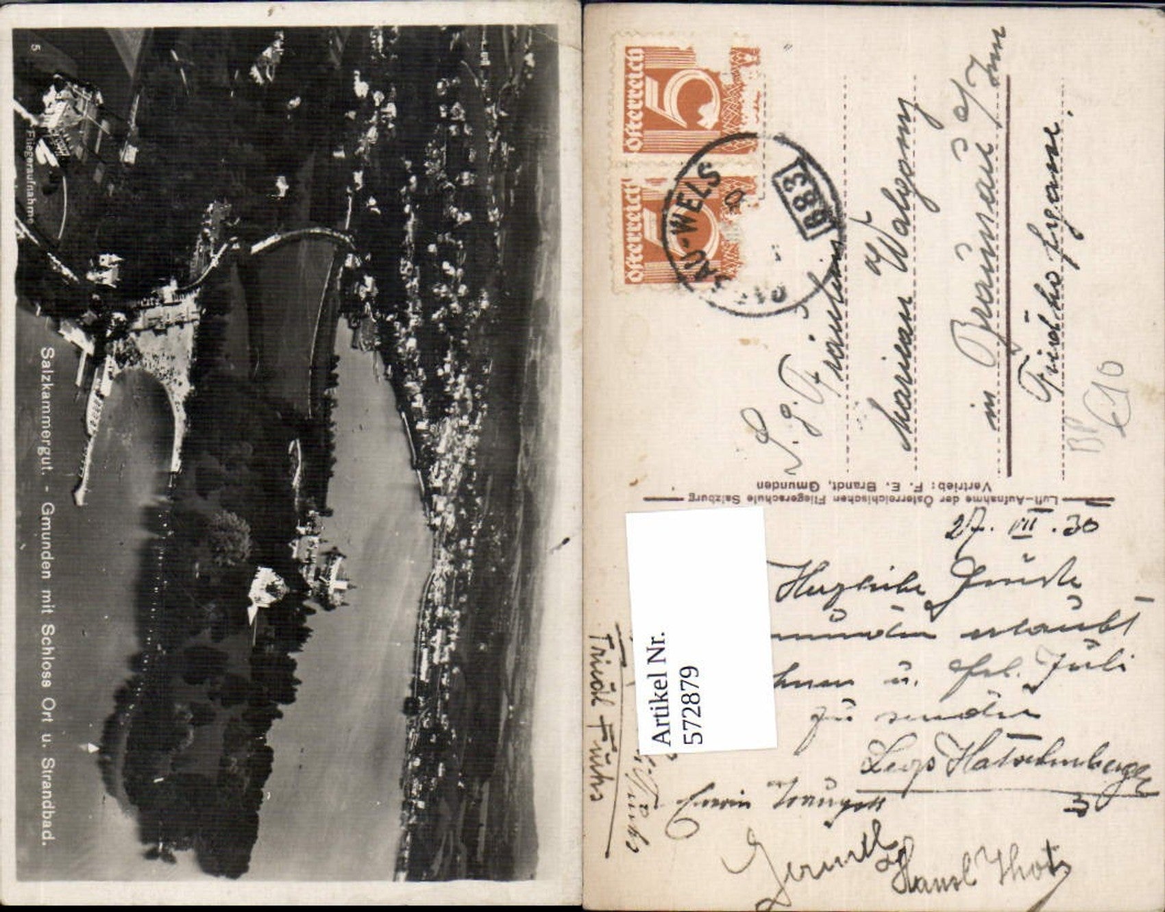 572879,tolle Fliegeraufnahme Gmunden am Traunsee Schloss Orth Bahnpost Zug 683
