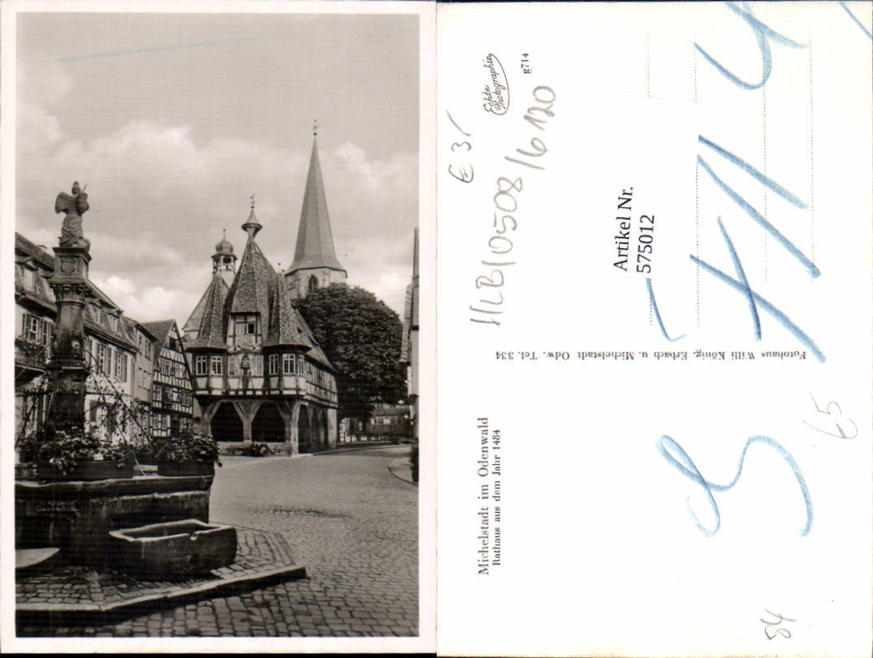 575012,Foto Ak Michelstadt i. Odenwald Rathaus Brunnen