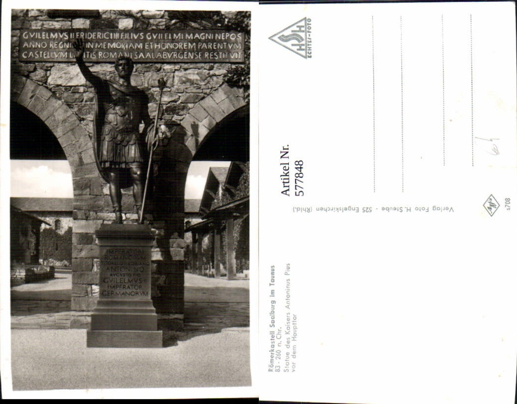 577848,Antike Kastell Saalburg Taunus Römerkastell Statue d. Kaisers Antoninus Pius Haupttor