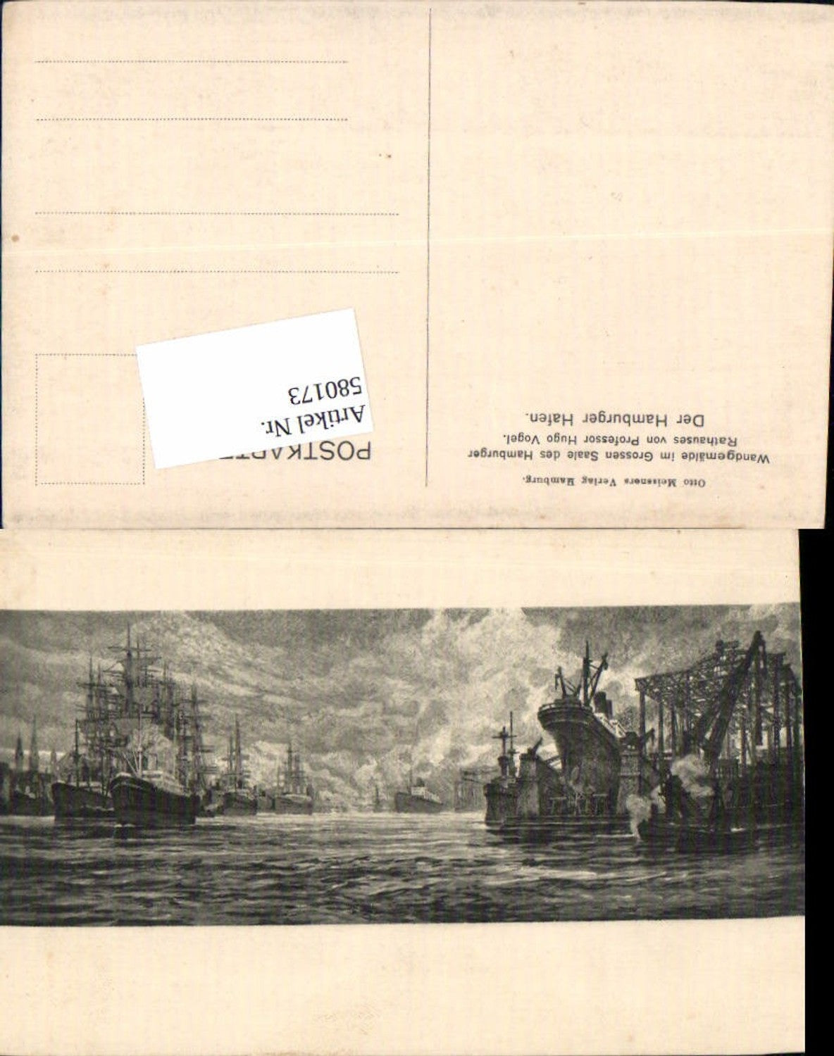 580173,Künstler AK Hugo Vogel Hamburg Hafen Schiffe