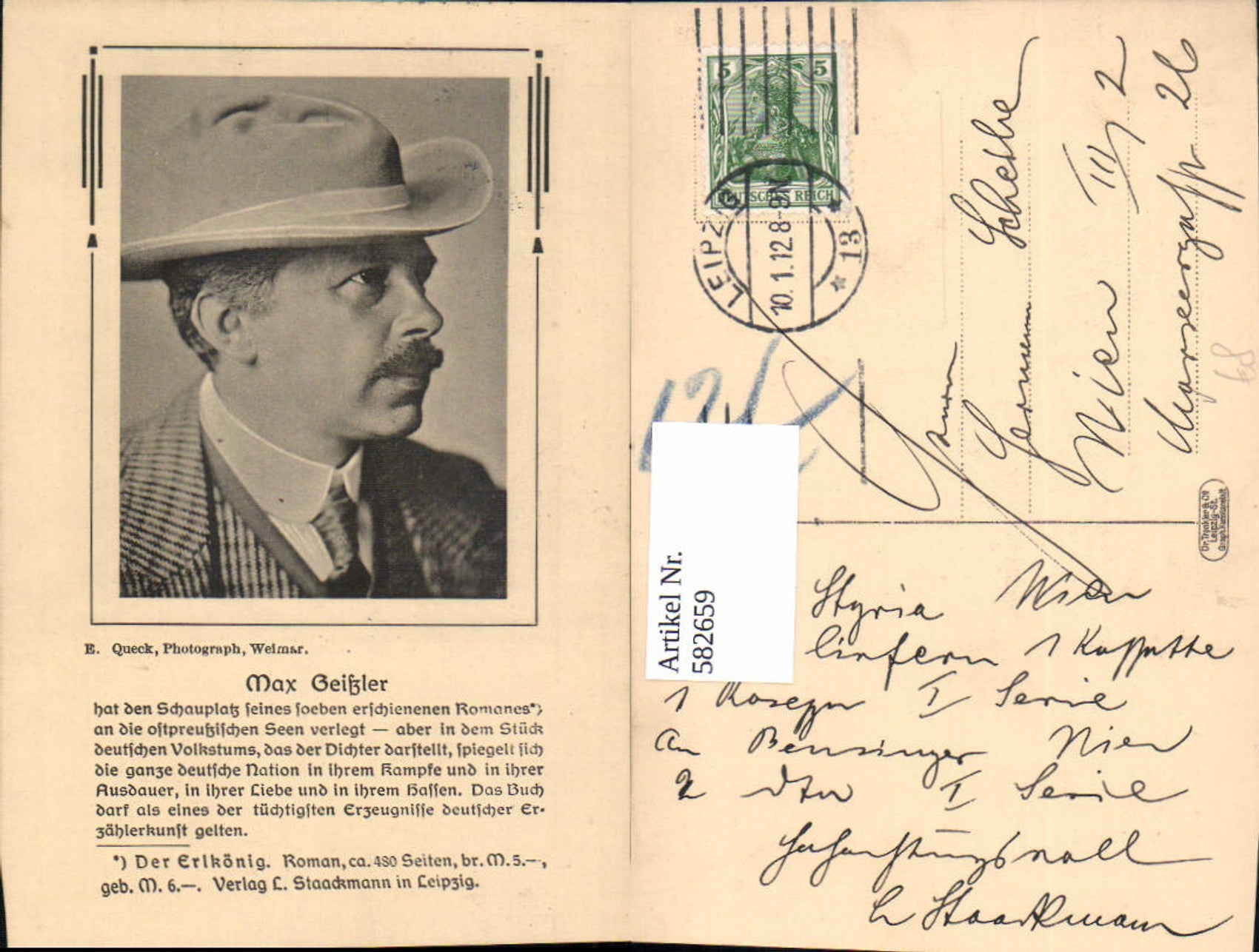 582659,Max Geißler Schriftsteller pub E. Queck