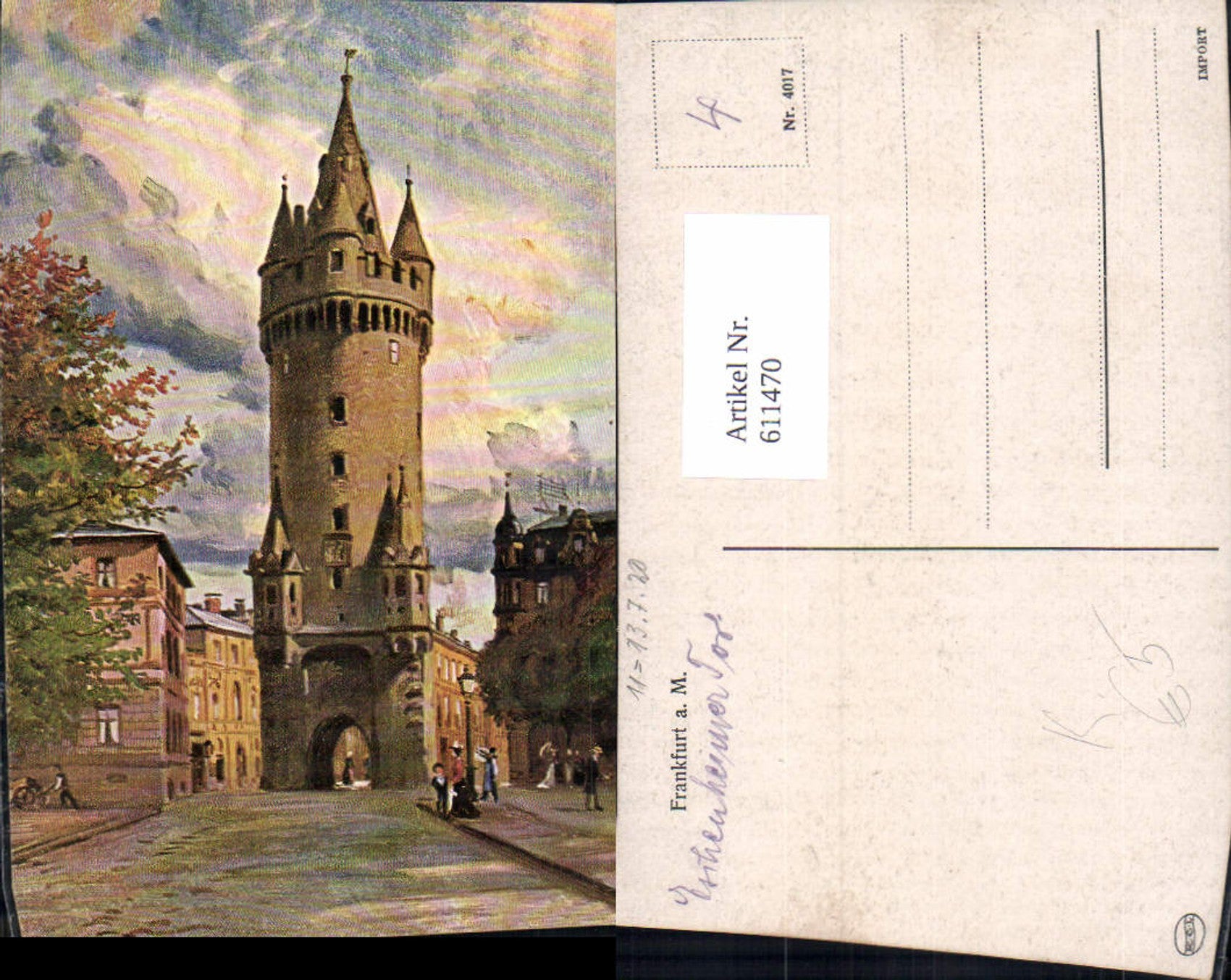 611470,Künstler Ak Frankfurt a. Main Eschenheimer Tor