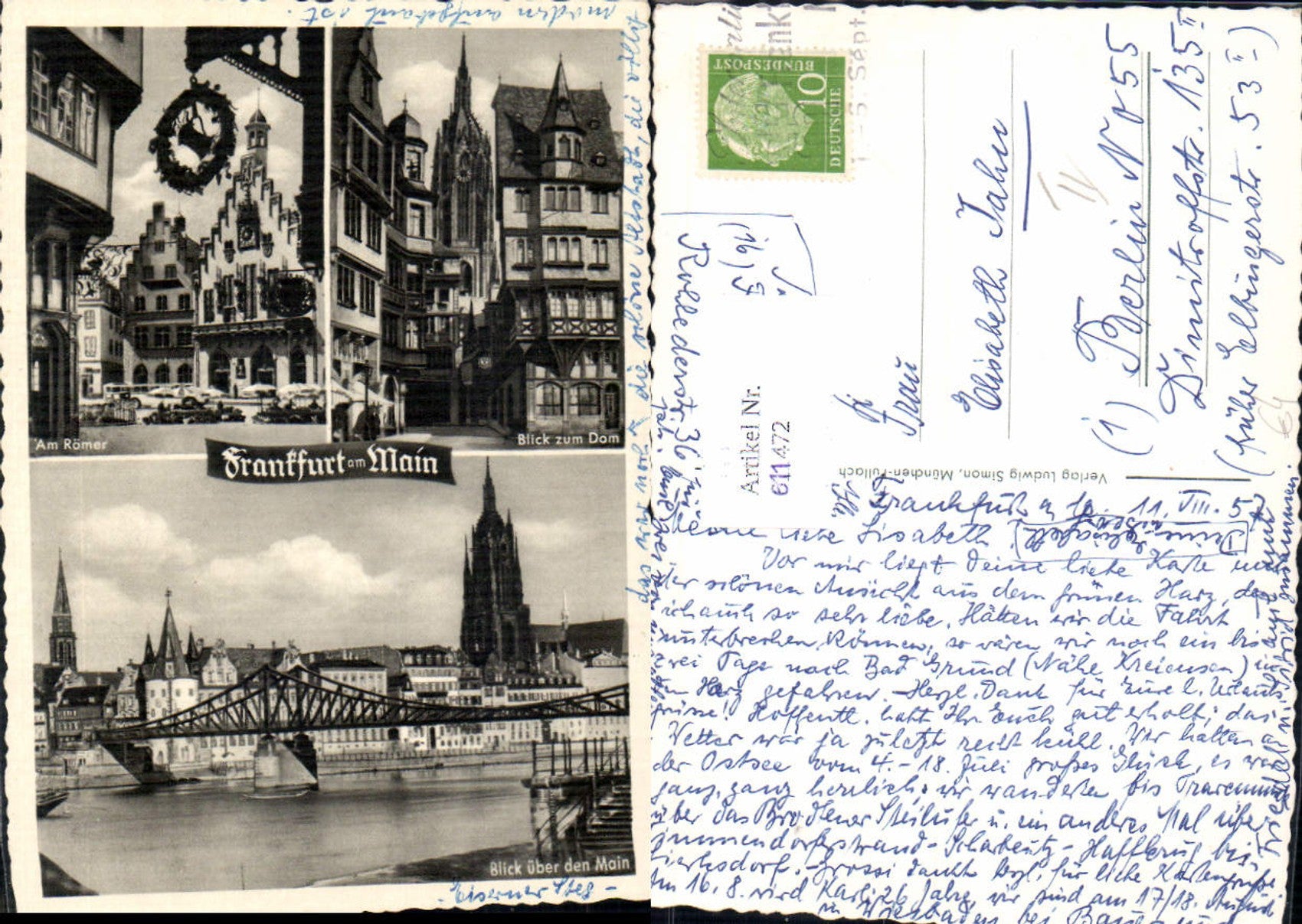 611472,Mehrbild Ak Frankfurt a. Main Am Römer Blick v. Dom Blick über d. Main