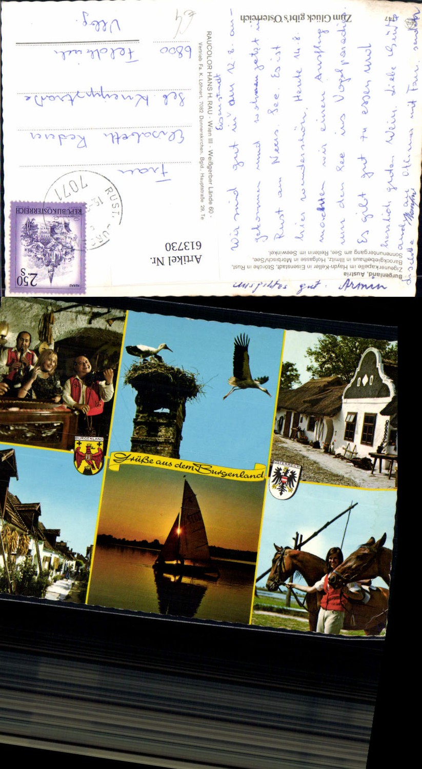 613730,Mehrbild Ak Burgenland Störche Rust Hofgasse Mörbisch Reiterin Seewinkel Pferde Segelboot