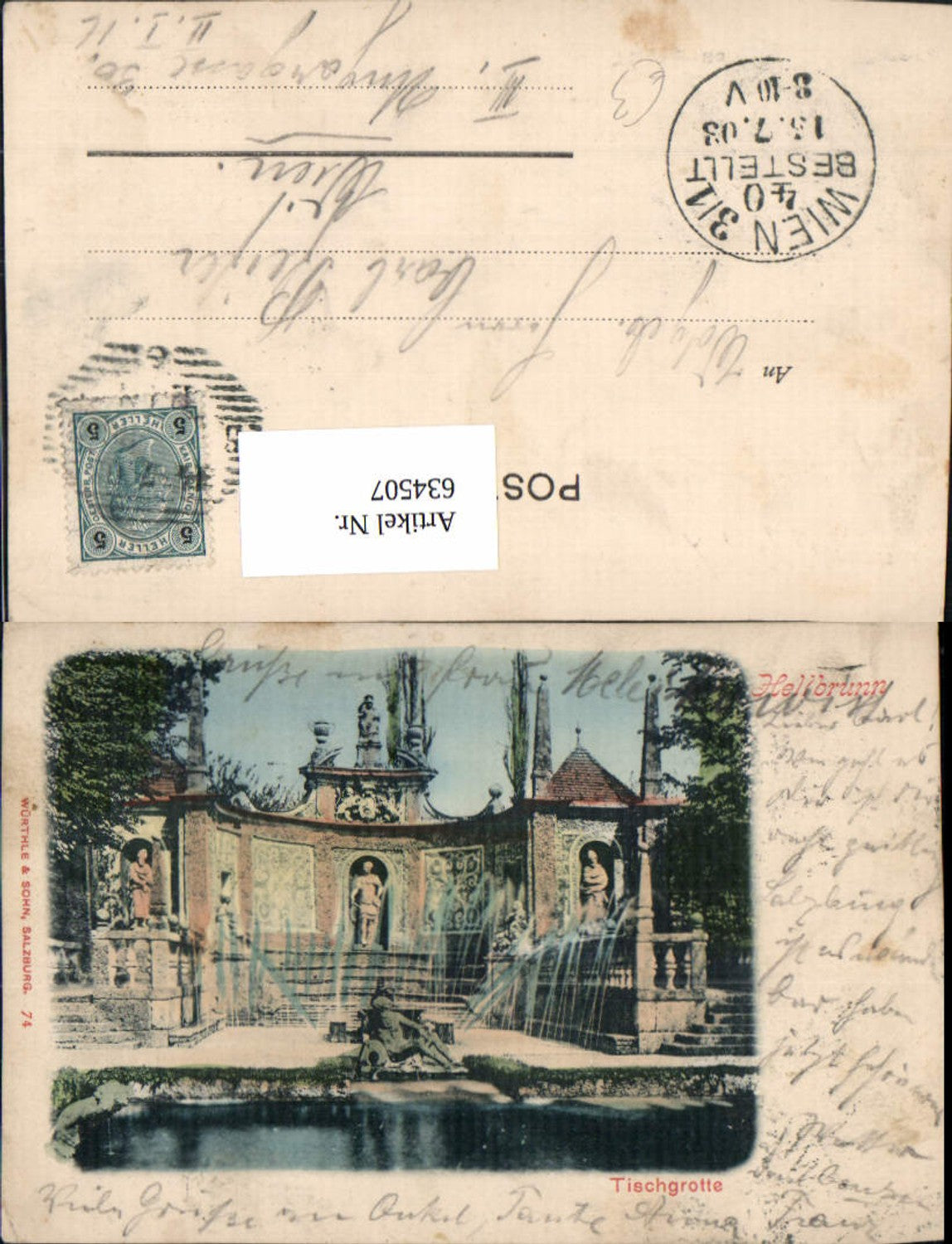 634507,Salzburg Hellbrunn Tischgrotte Brunnen Springbrunnen