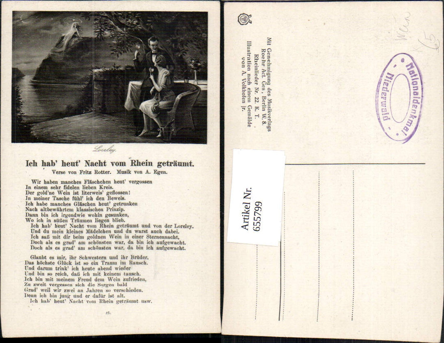 655799,Liedkarte Loreley Sankt Goarshausen Wein Ich hab heut Nacht v. Rhein geträumt