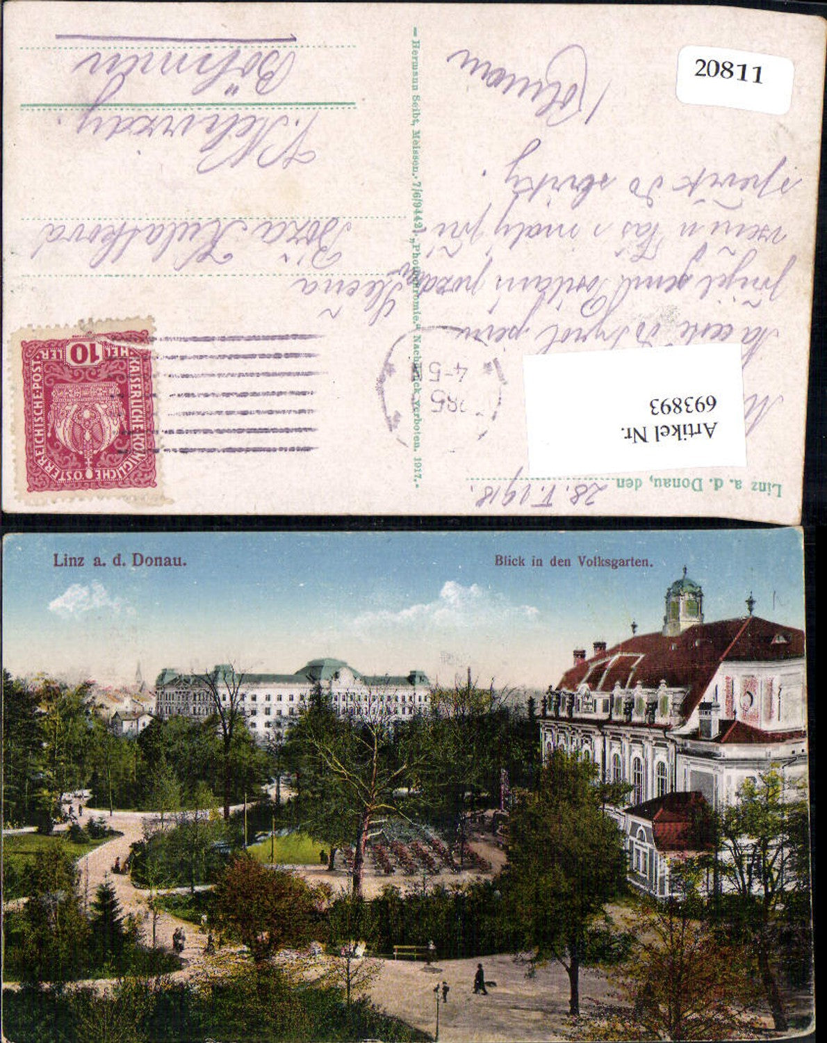 693893 Linz an der Donau Volksgarten gel V. Nehirzdy pub Hermann Seibt 7/6/9442