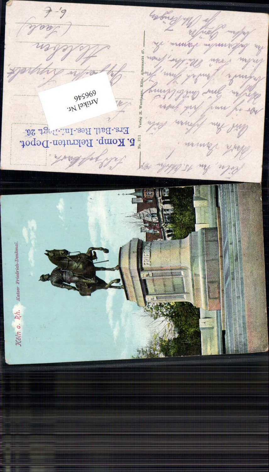 696546 Köln am Rhein Kaiser Friedrich Denkmal Feldpost 5. Komp. Rekruten Depot gel Alsleben