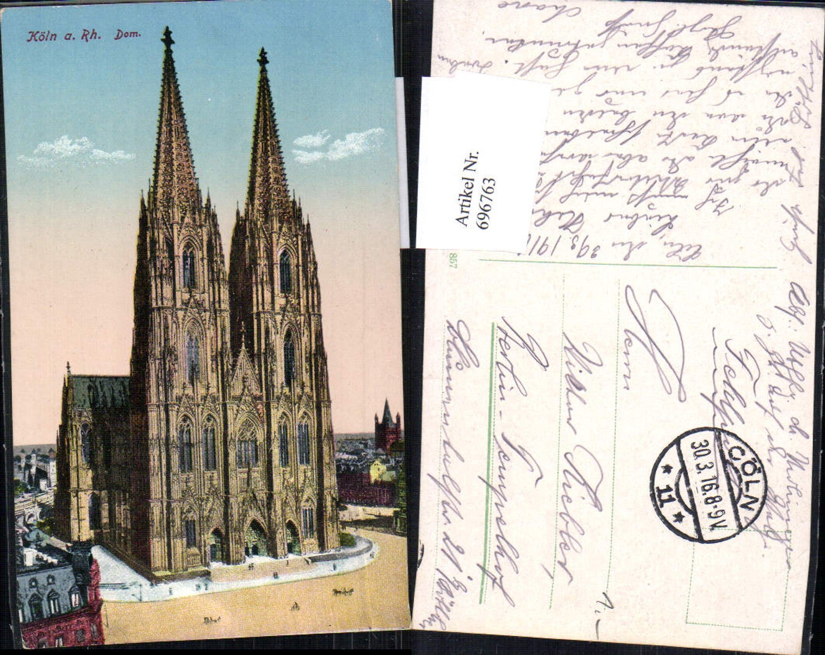 696763 Köln Cöln am Rhein Dom gel Feldpost Tempelhof Berlin