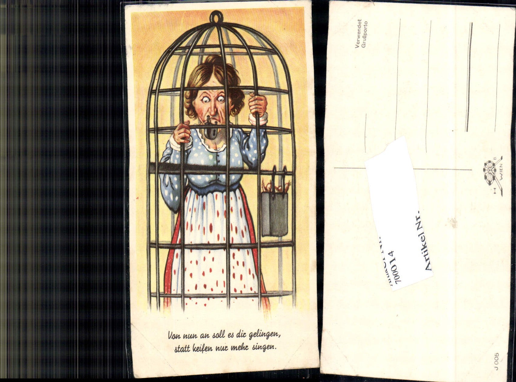 700014 Scherzkarte Humor Scherz Frauenfeindlich Frau im Käfig
