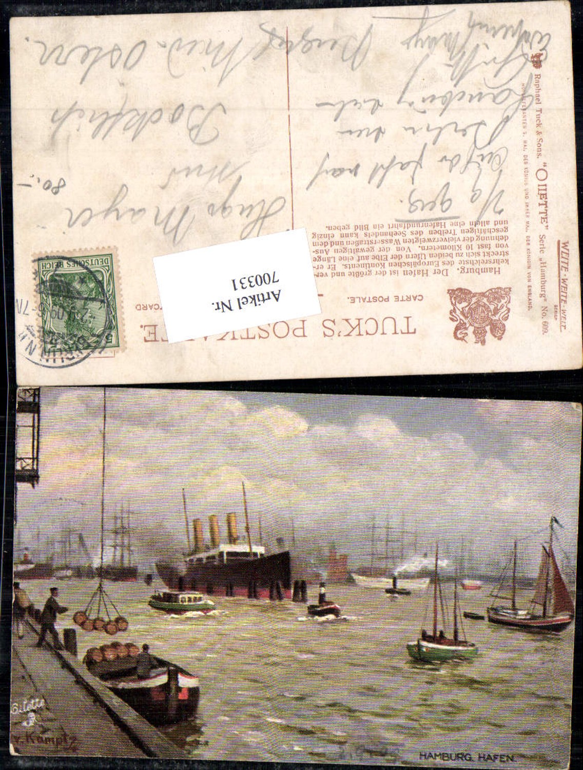 700331 Künstler AK v. Kamptz Hamburg Hafen Dampfer Schiffe pub Tuck Oilette 609