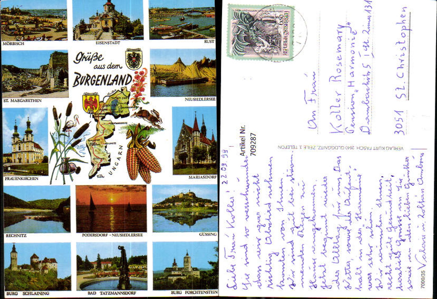 709287 Lagekarte Burgenland Mörbisch Rust Güssing Rechnitz Frauenkirchen