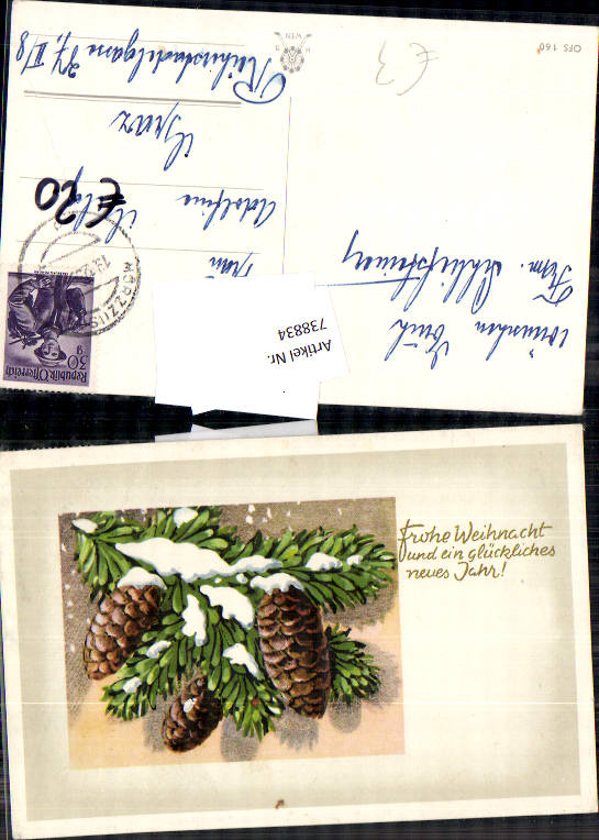738834 Lithographie Weihnachten Neujahr Tannenzweige Zweige Tannenzapfen