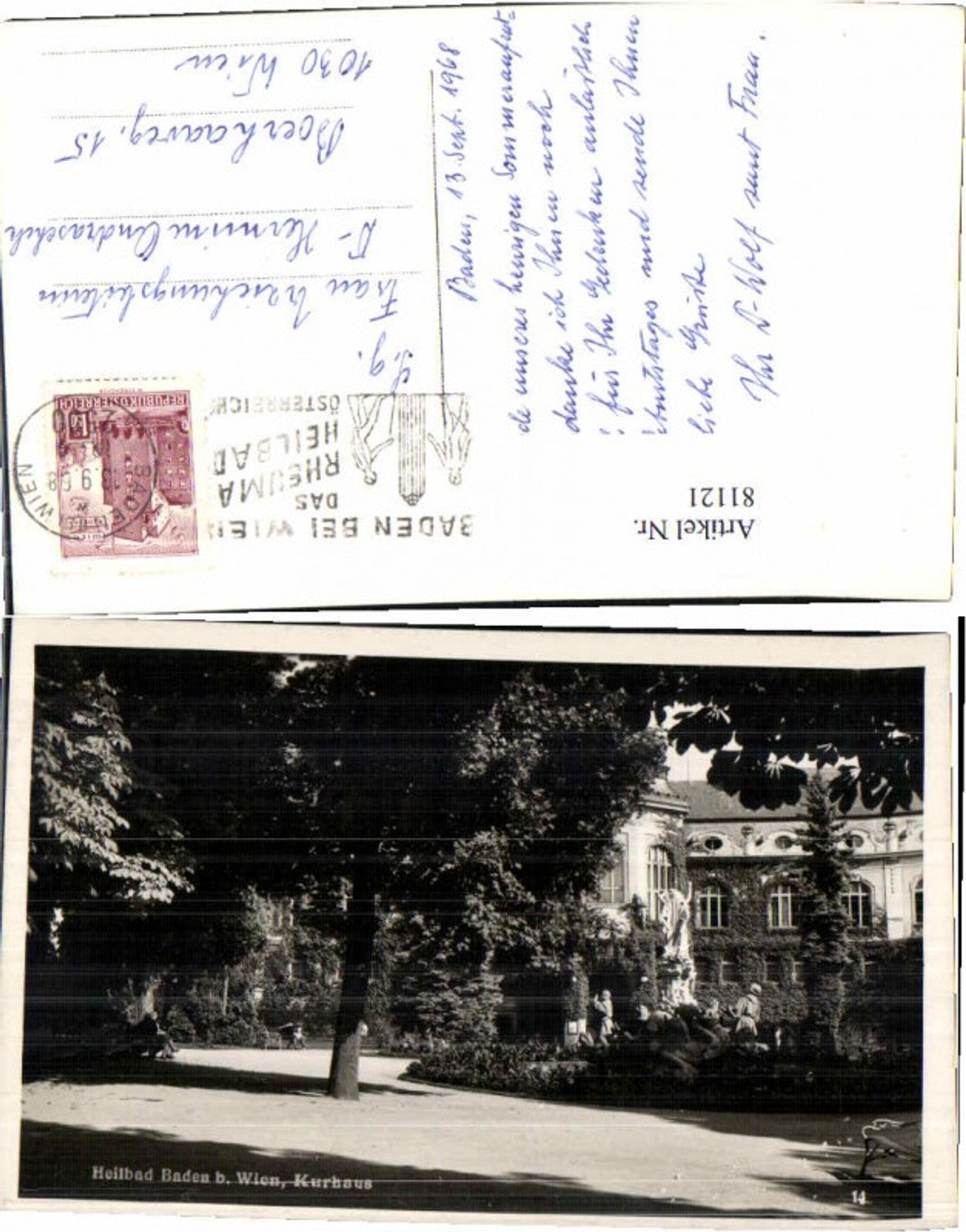81121,Baden bei Wien Seltene Karte aus dem Park Kurhaus
