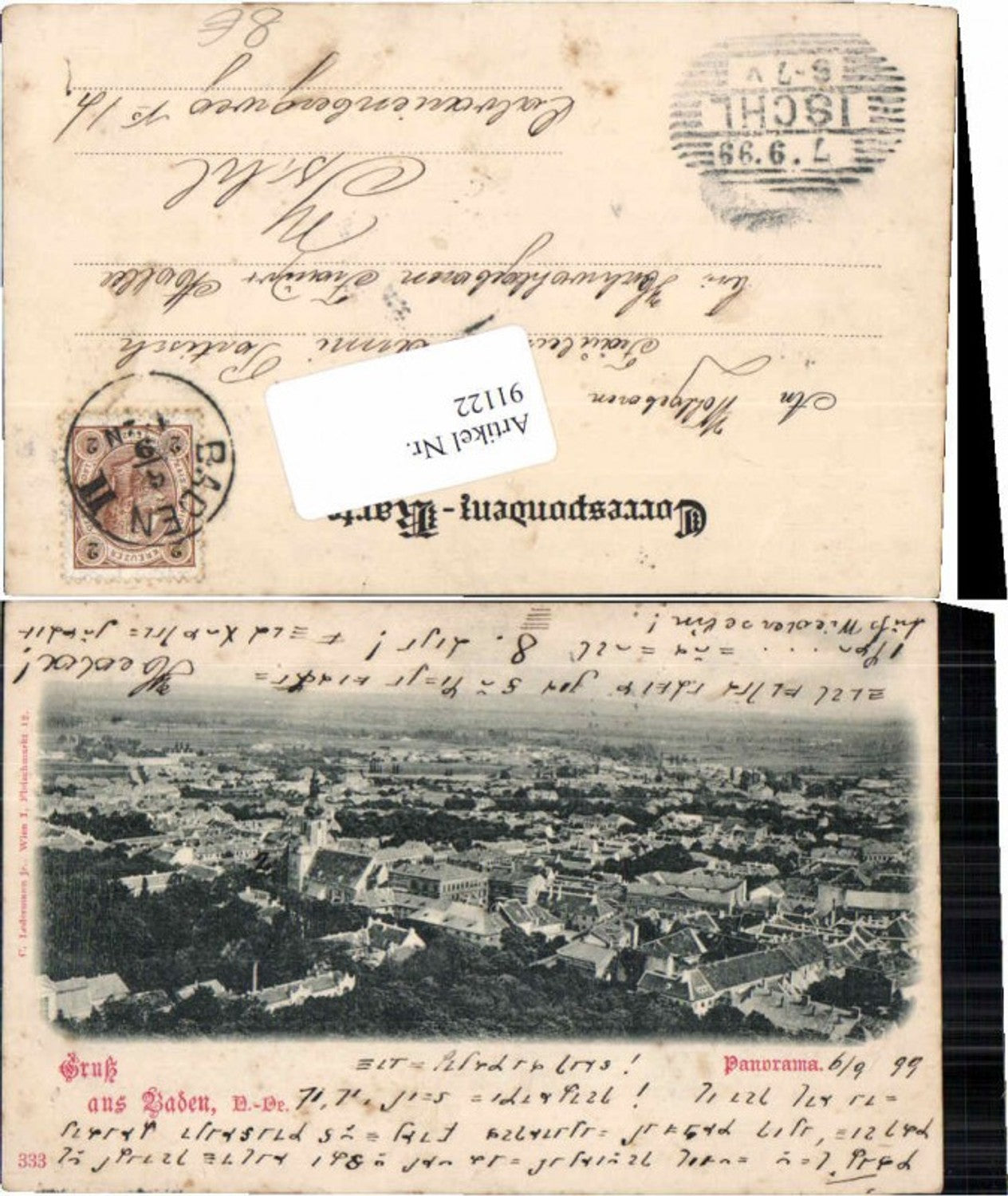 91122,Gruss aus Baden b. Wien Panorama gel. 1899