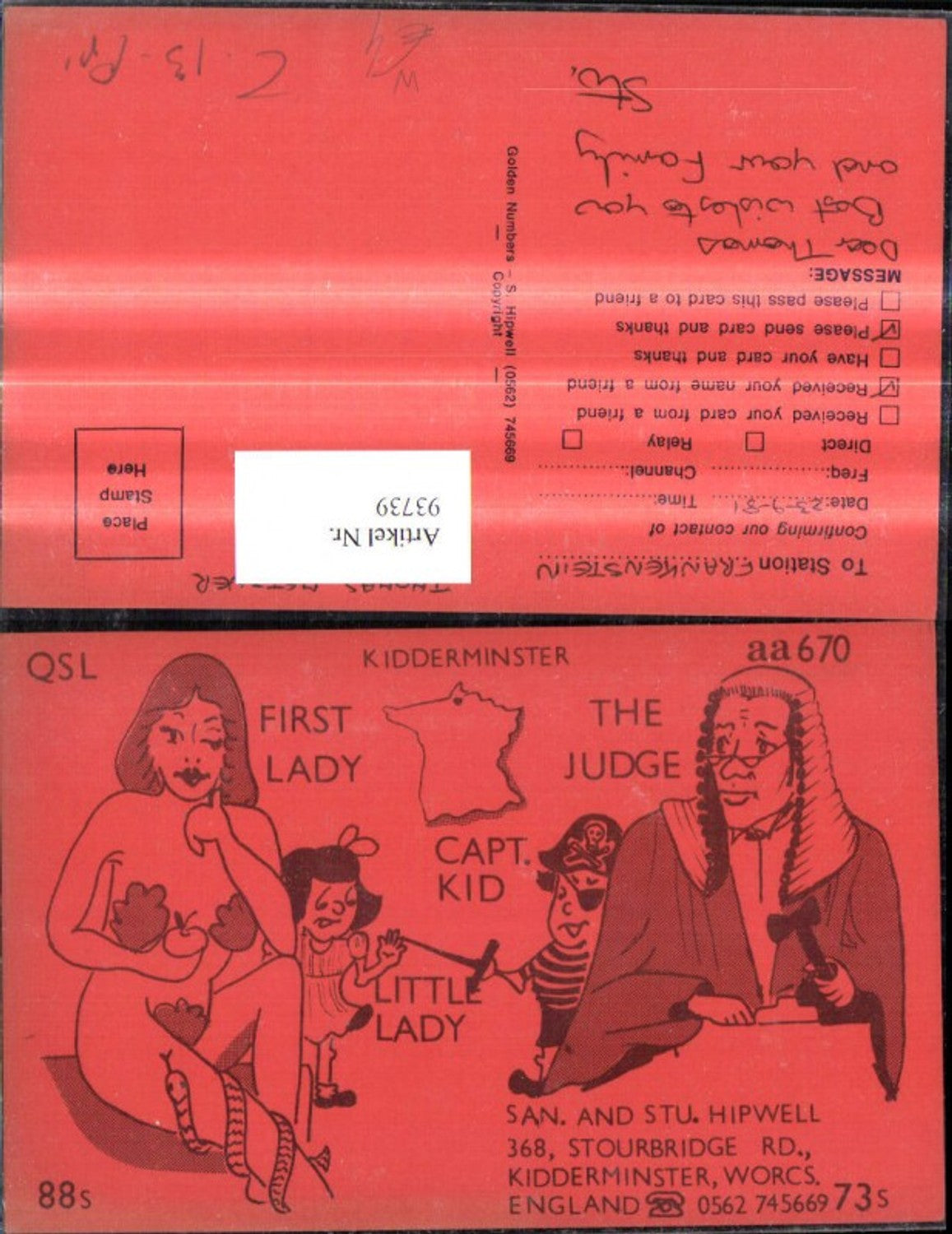 93739,QSL CB Karte Kidderminster Worcs. England First Lady The Judge Capt. Kid Little Lady