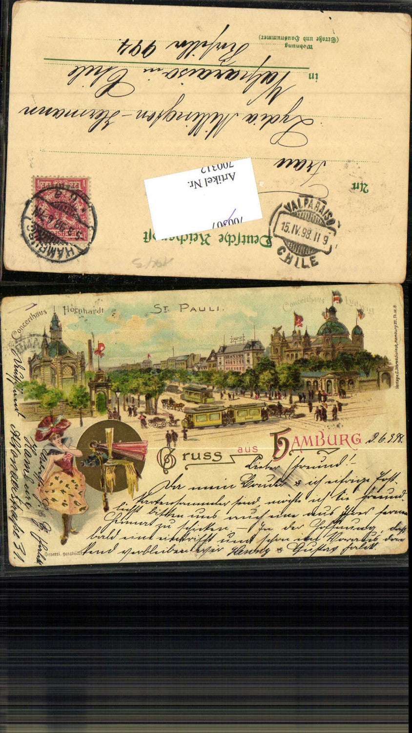 Lithographie Hamburg St. Pauli Concerthaus Hornhardt & Ludwig gel Valparaiso Chile