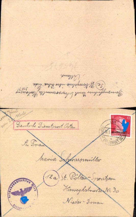Feldpostbrief Feldpost Jarnki Belarus 1944 Spratzern m. Inhalt Gleisbauzug Janki