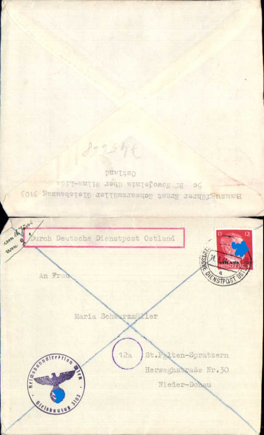Feldpost WK 2 Minsk 1943 Feldpostbrief Spratzern m. Inhalt Zensur Gleisbauzug