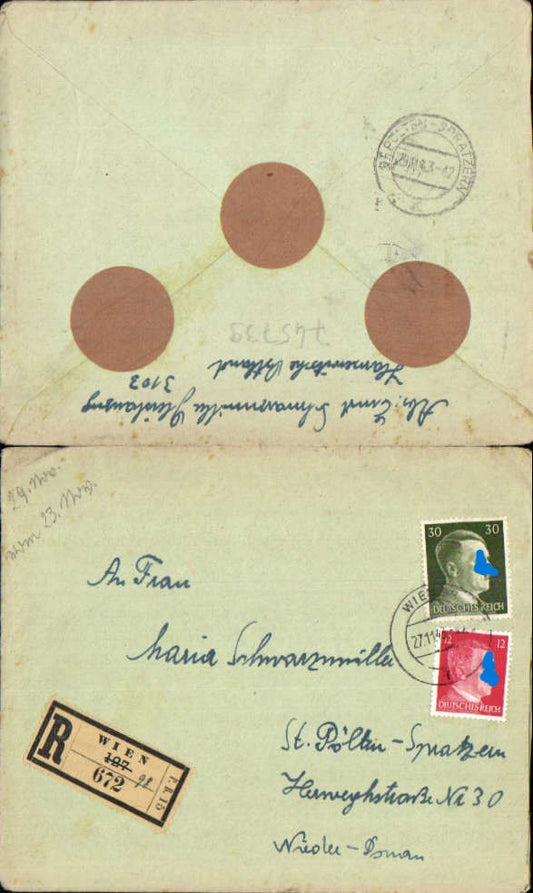 Feldpostbrief Mrozy Minsk Weissrussland Belarus Poland n. Spratzern St. Pölten 1944 744028