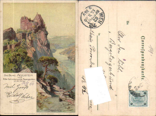 749506 Künstler Lithographie Ludwig Hans Fischer Burg Aggstein an der Donau Wachau