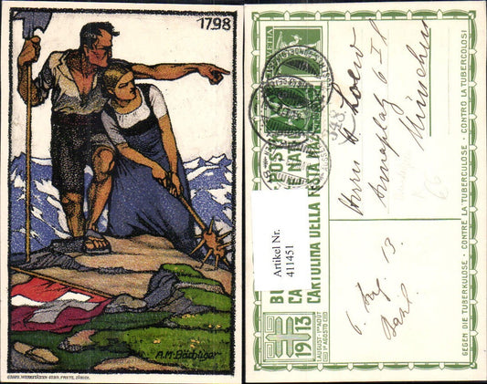 411451,Künstler Ak A. M. Bächtiger Bundesfeier geg. Tuberkulose 19 Jhdt.