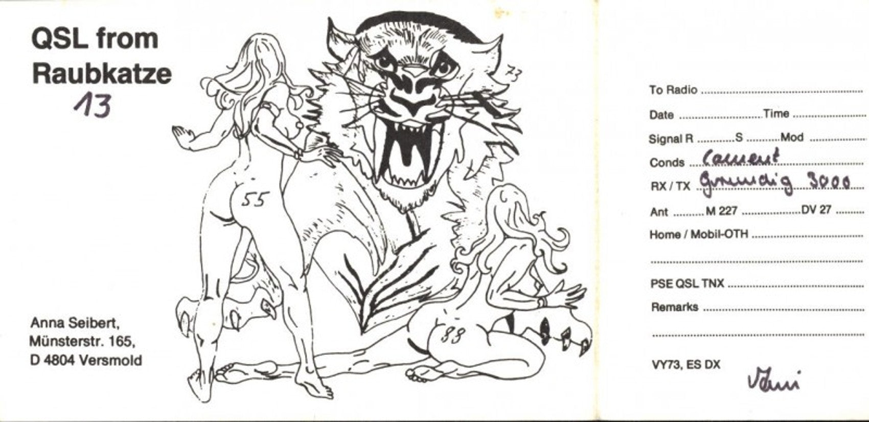 100404,QSL CB Karte Versmold Raubkatze 13 Stempel QSL Club Extertaler Burgstall Pauer Lilli Club
