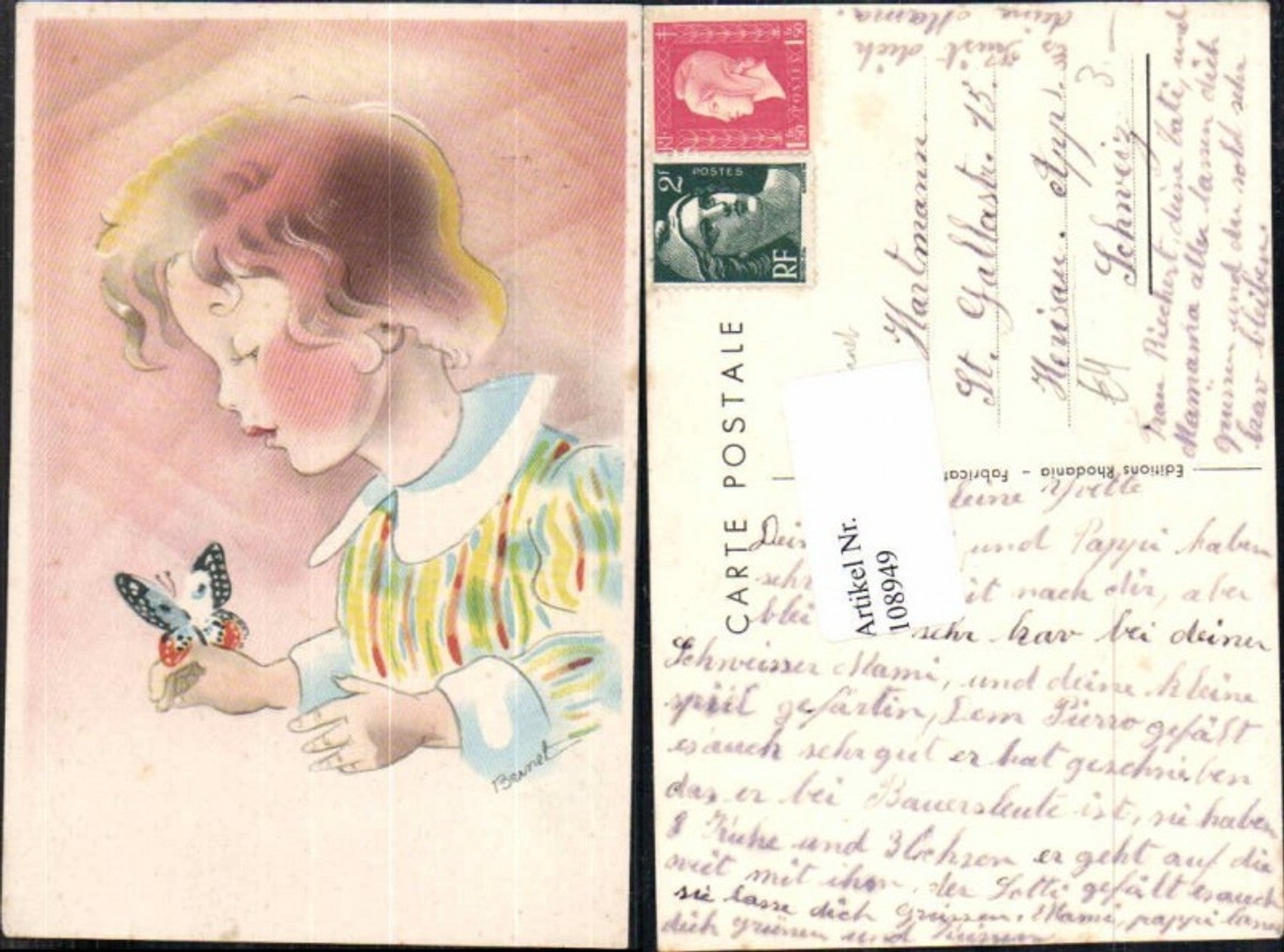 108949,Mädchen m. Schmetterling Butterfly sign. Bernet