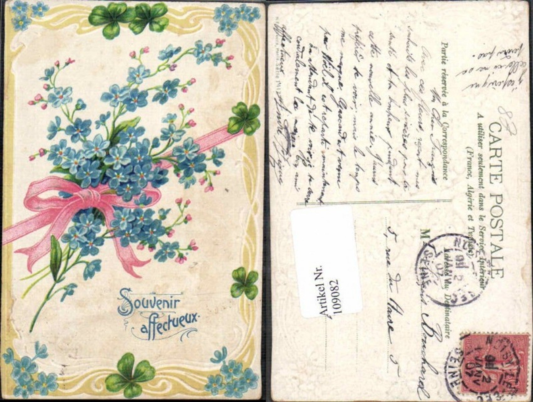 109082,Tolle Präge Litho Klee Kleeblatt Veilchen