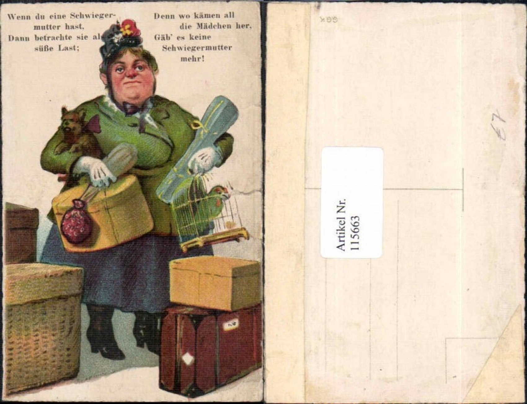 115663,Juxkarte Scherzkarte Böse Schwiegermutter Hund Vogelkäfig Spruch
