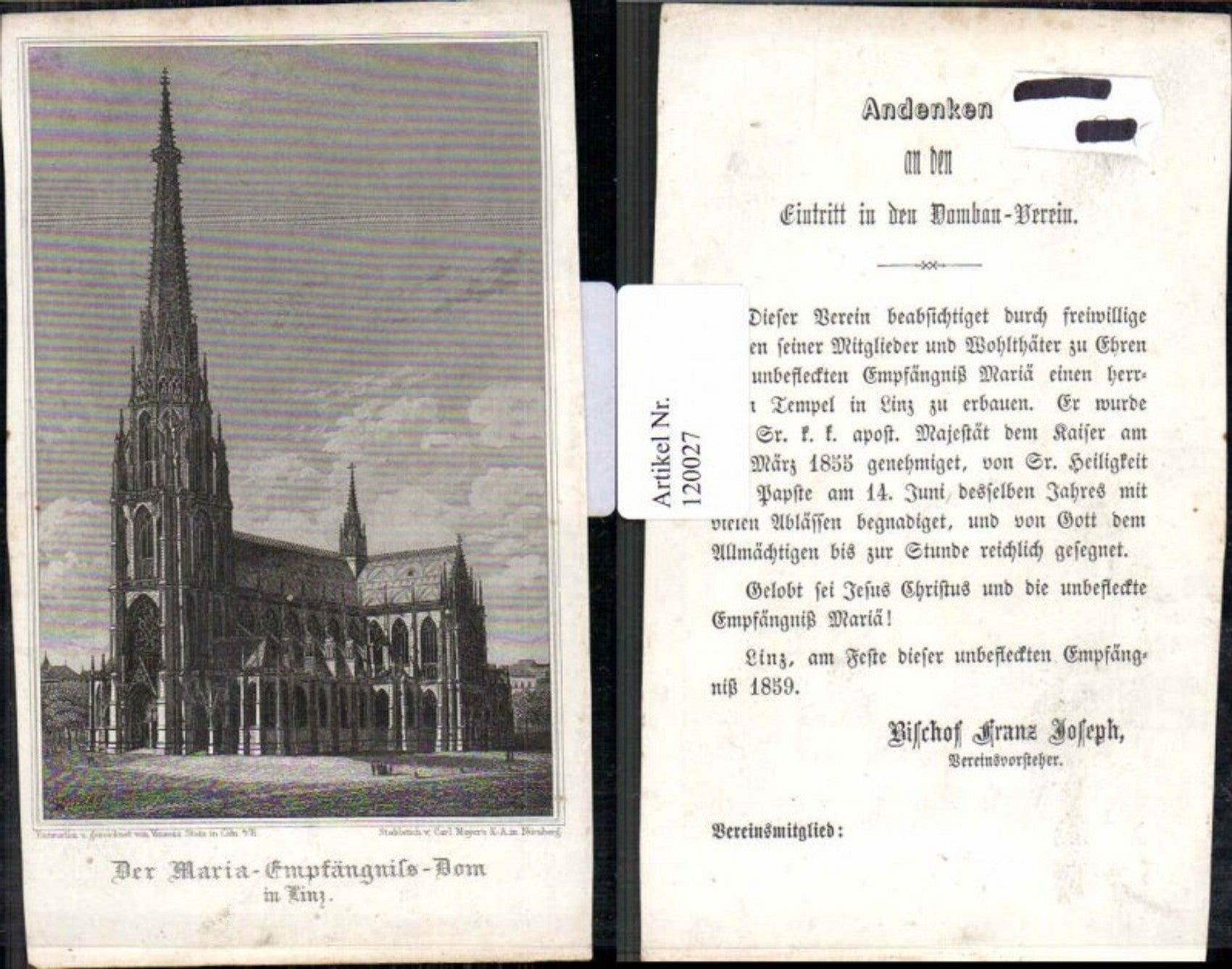 120027,RAR Stahlstich um 1859 Heiligenbildchen Linz a.d. Donau Maria Empfängnis Dom