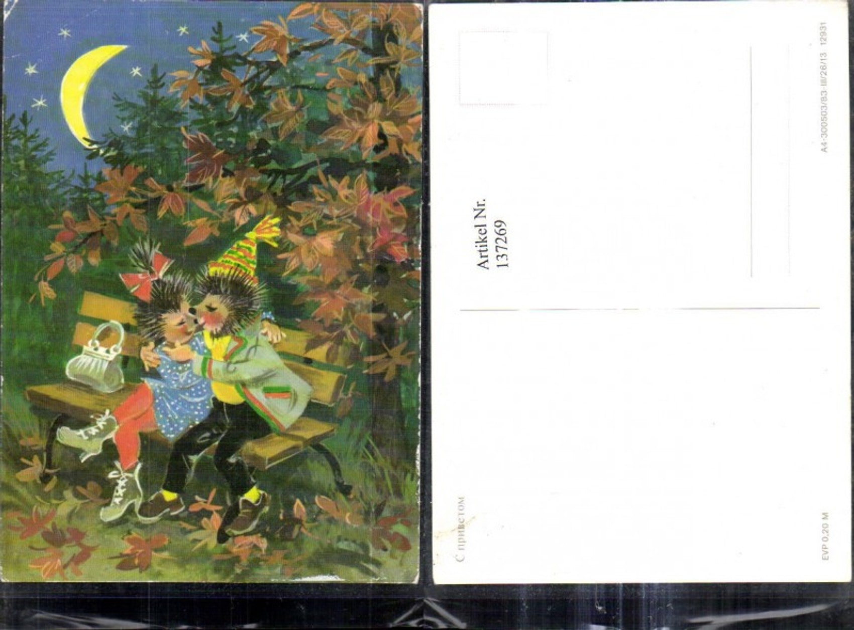 137269,Igel Paar Kuss a. Bank b. Mondschein Liebe
