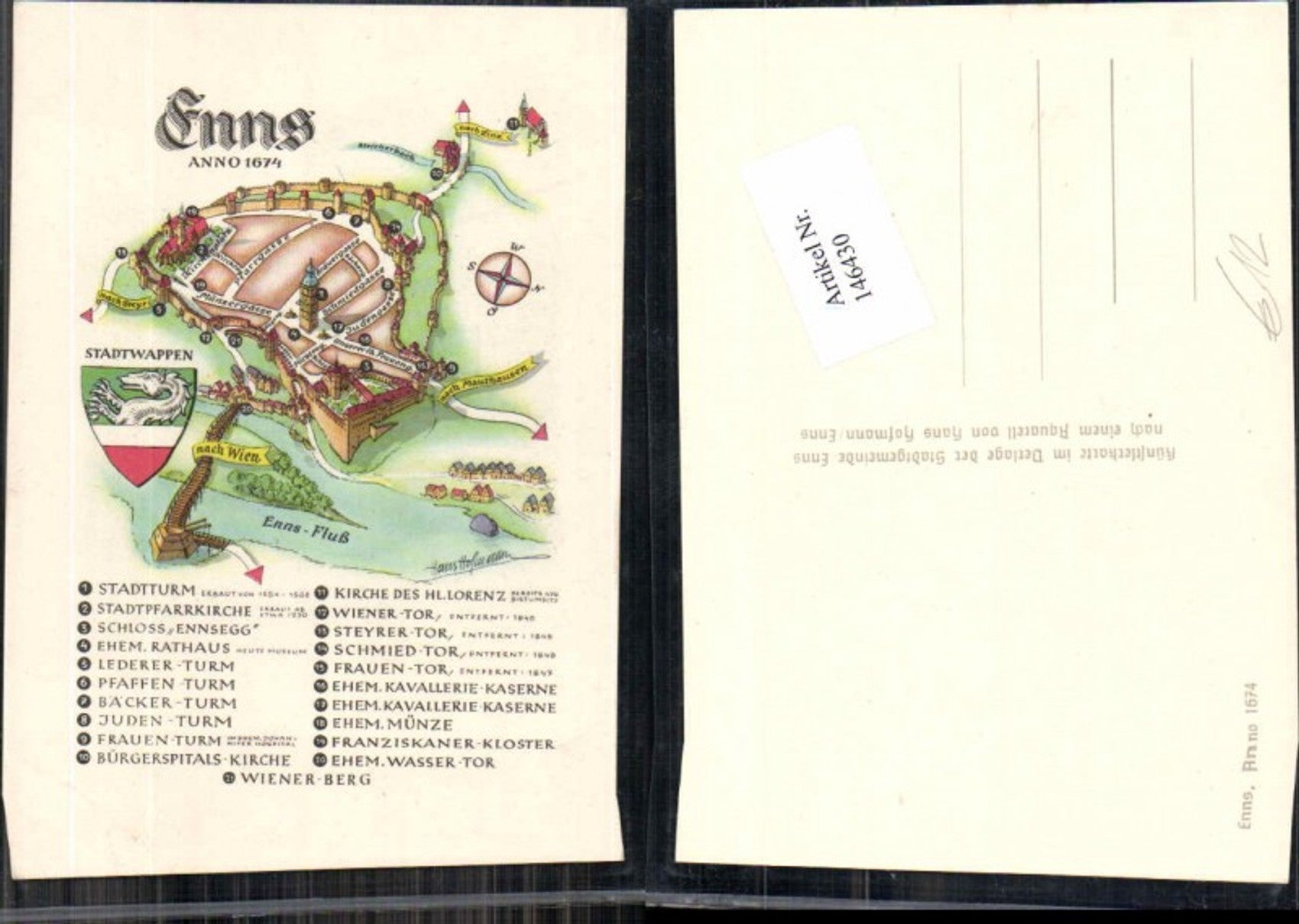 146430,Stadt Enns anno 1674 Künstlerkarte Hans Hofmann