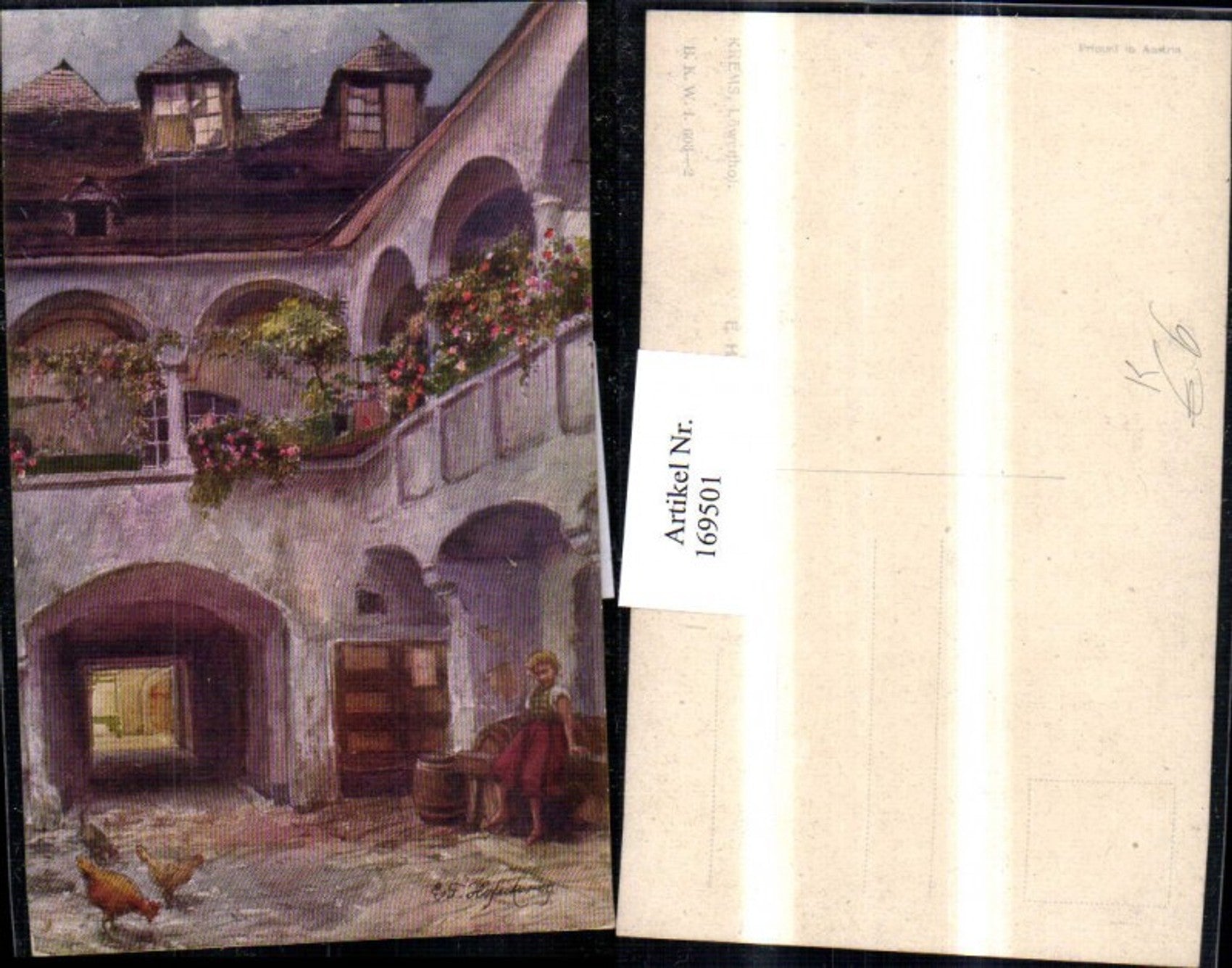 169501,Krems a. d. Donau Löwenhof Künstler Ak sign E. F. Hofecker