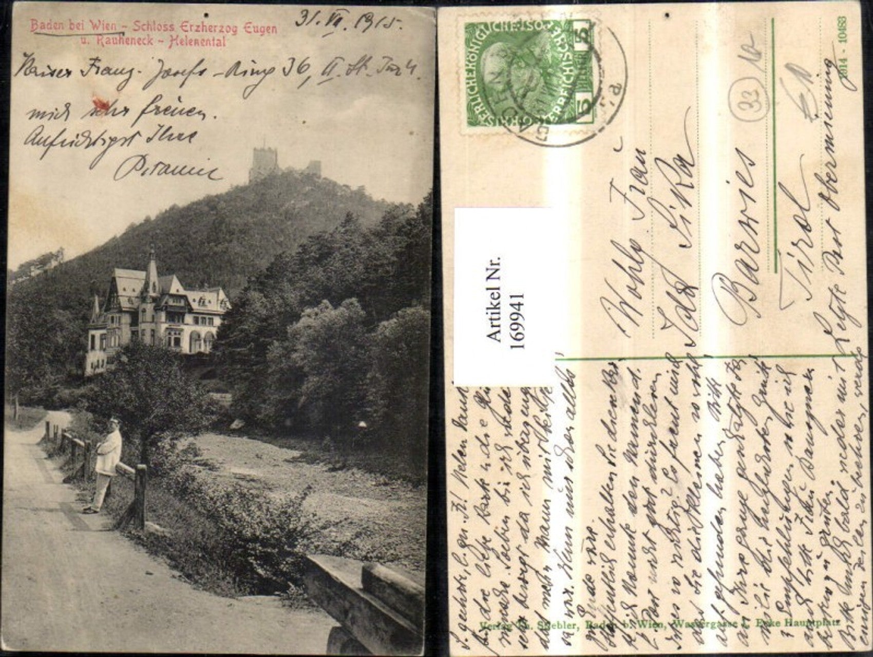 169941,Baden b. Wien Schloss Erzherzog Eugen u. Rauheneck Helenental Ansicht m. Mann 1915