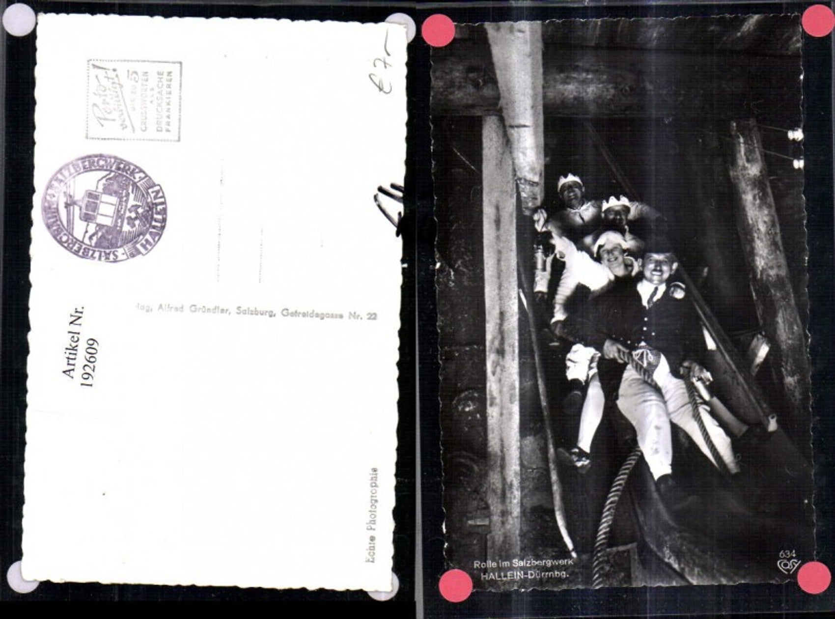 192609,Foto Ak Salzbergwerk Dürrnberg b. Hallein Ansicht Personen a. Stollenrutsche Rutsche