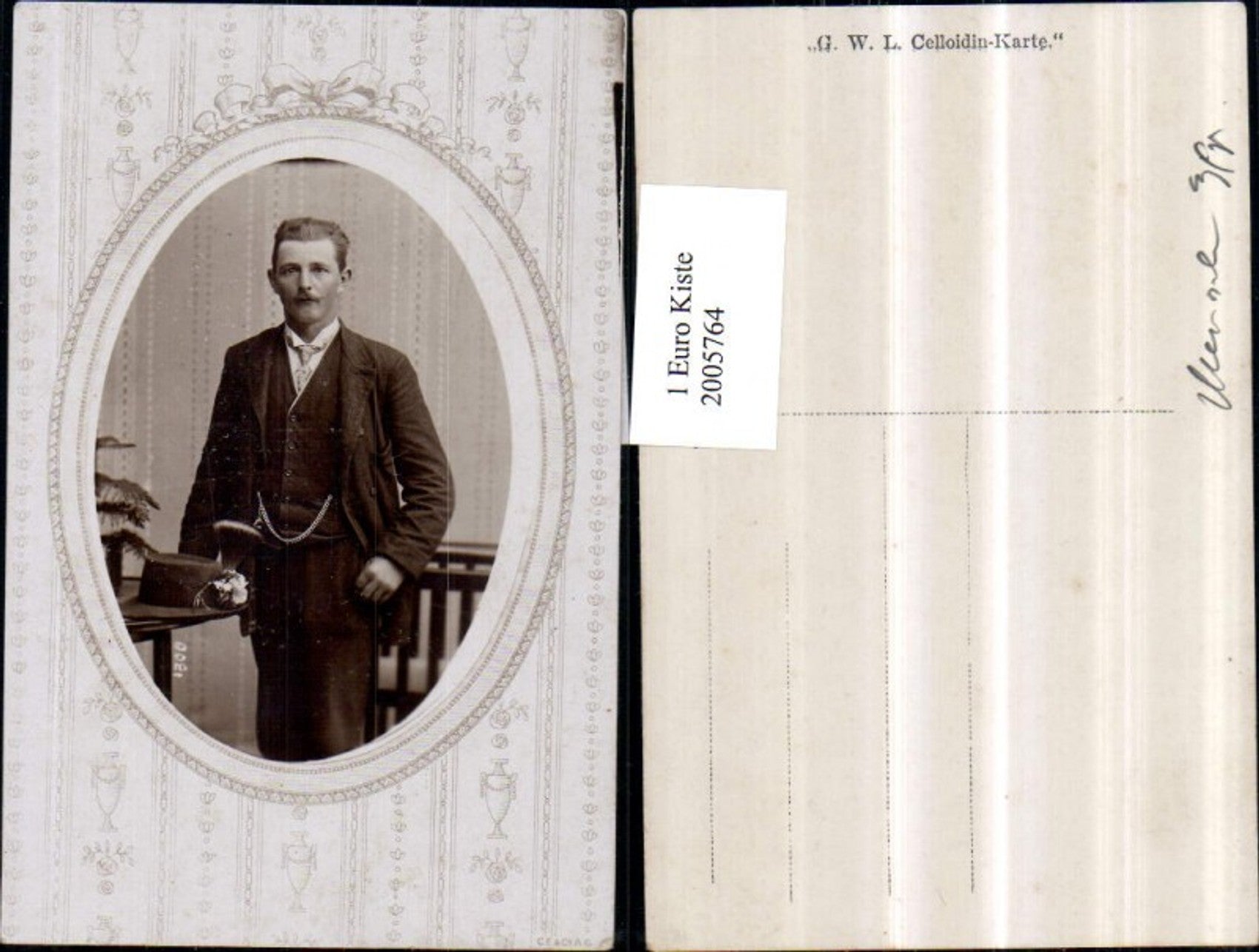 2005764,Mann m. Anzug Krawatte Bart Hut Passepartout